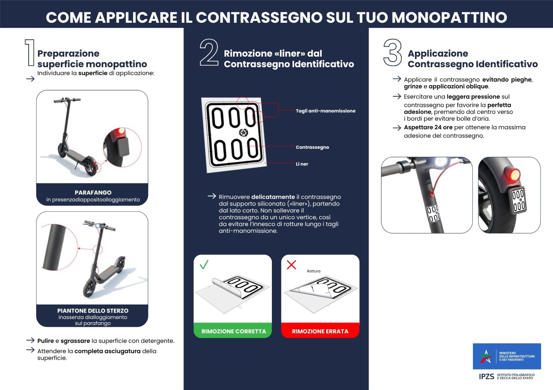 Il contrassegno è realizzato con caratteristiche di sicurezza analoghe a quelle delle carte valori ed è progettato per essere applicato in modo stabile sul monopattino.
